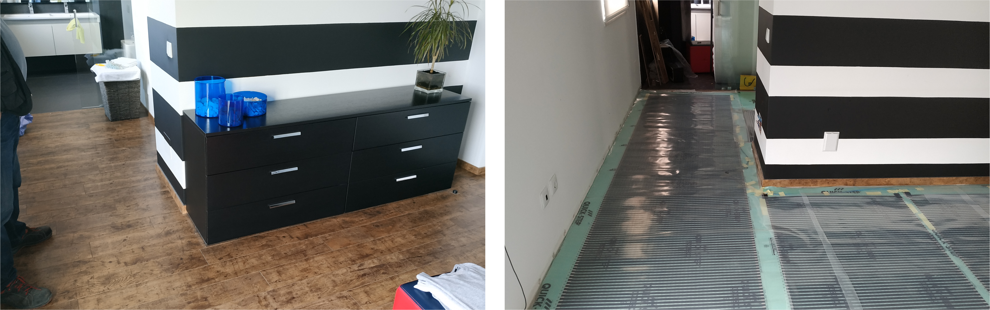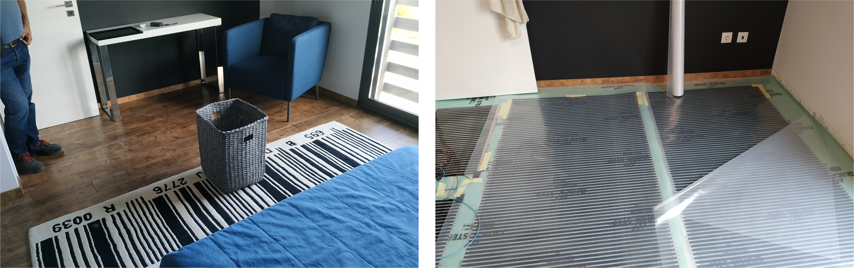 Em ambos os quartos foi retirado o pavimento flutuante existe e aplicada a solução de aquecimento pavimento com película de aquecimento.